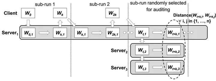 It is common practice to outsource the training of machine learning models to cloud providers. Clients who do so gain from the cloud’s economies of scale, but implicitly assume trust, the server should not deviate from the client’s training procedure. A malicious server may, for instance, seek to insert backdoors in the model. Detecting a backdoored model without prior knowledge of both the backdoor attack and its accompanying trigger remains a challenging problem. In this paper, we show that a client with access to multiple cloud providers can replicate a subset of training steps across multiple servers to detect deviation from the training procedure in a similar manner to differential testing. Assuming some cloud-provided servers are benign, we identify malicious servers by the substantial difference between model updates required for backdooring and those resulting from clean training. Perhaps the strongest advantage of our approach is its suitability to clients that have limited-to-no local compute capability to perform training; we leverage the existence of multiple cloud providers to identify malicious updates without expensive human labeling or heavy computation. We demonstrate the capabilities of our approach on an outsourced supervised learning task where $50%$ of the cloud providers insert their own backdoor; our approach is able to correctly identify $99.6%$ of them. In essence, our approach is successful because it replaces the signature-based paradigm taken by existing approaches with an anomaly-based detection paradigm. Furthermore, our approach is robust to several attacks from adaptive adversaries utilizing knowledge of our detection scheme.